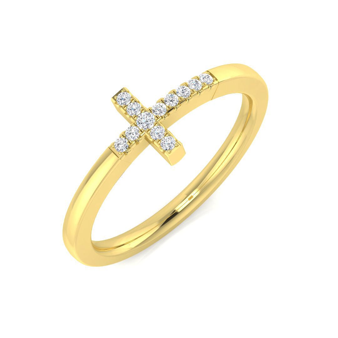 Graceful and modern, this side cross ring features 0.06 carat of round brilliant diamonds in a sleek micro pav? setting. The sideways cross design offers a subtle yet powerful symbol of faith, love, and elegance. Choose from natural or lab-created diamonds in your preferred gold color or platinum.