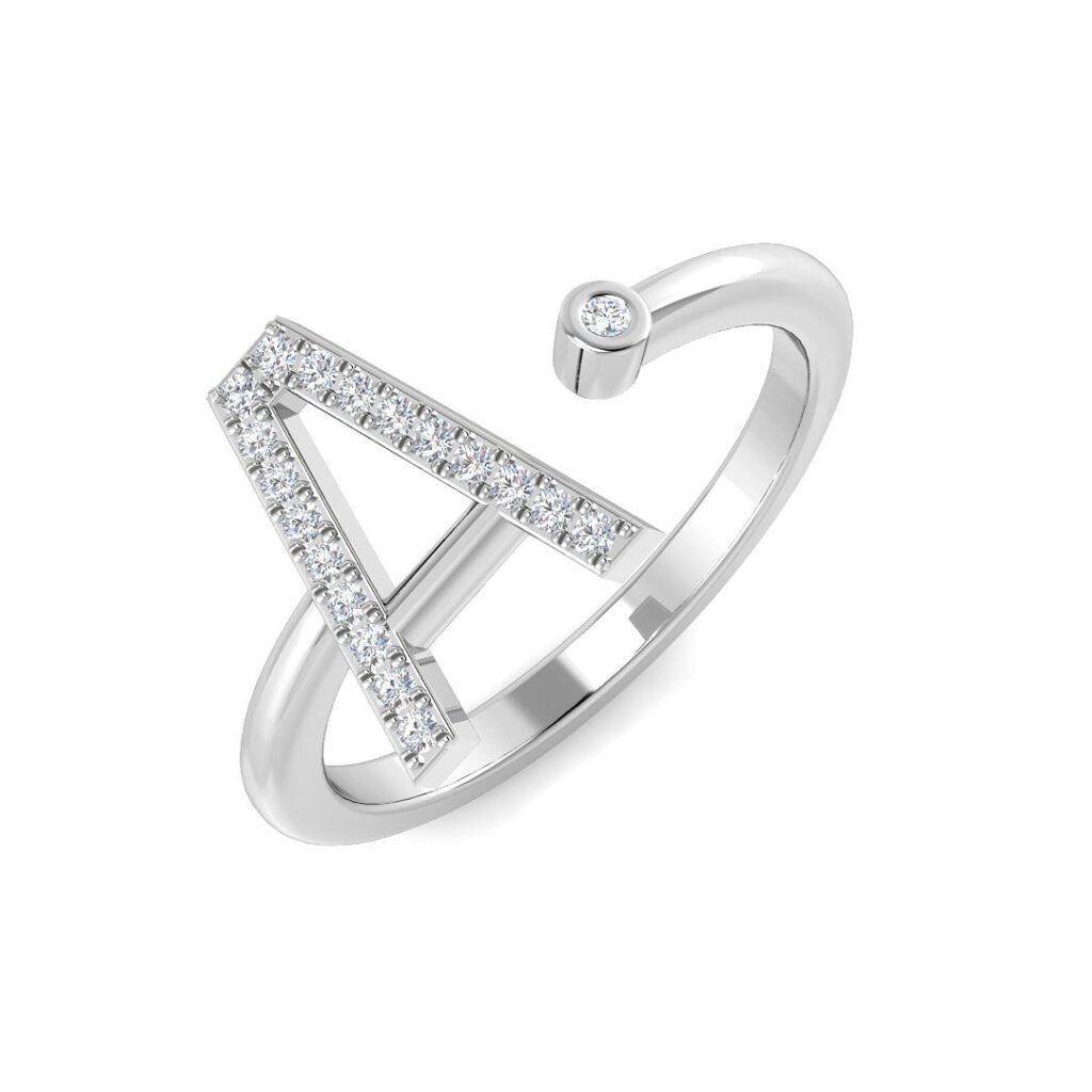 0.09 Carat Round Diamond Micro Pav? & Bezel Script Letter P Initial Ring