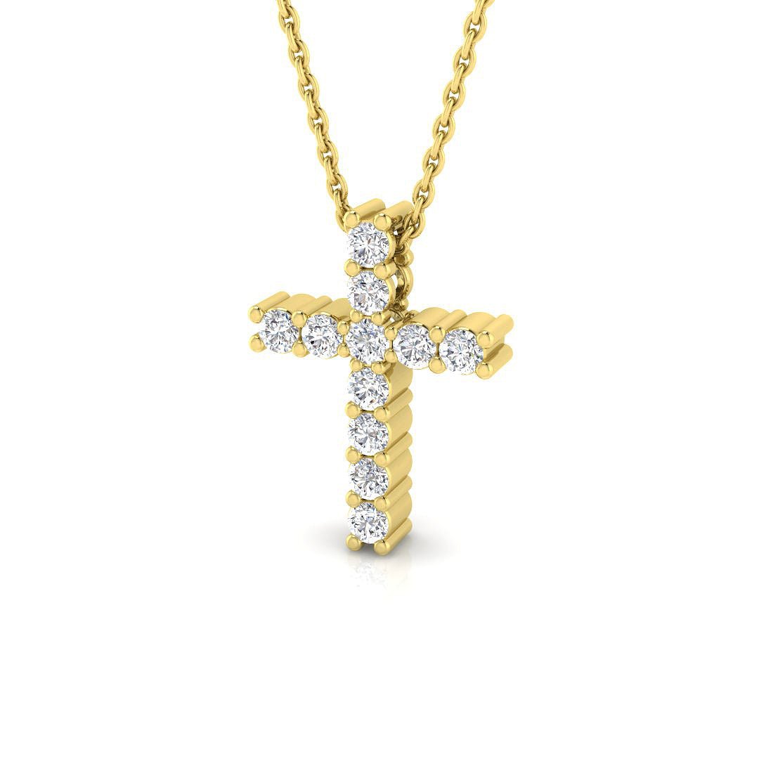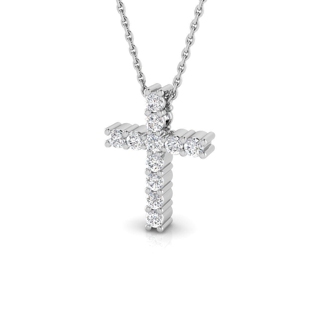 This elegant 0.37ct diamond cross necklace features round brilliant diamonds set in a shared prong setting. The prongs are designed to hold multiple diamonds together, creating a continuous sparkle across the cross pendant. Handcrafted in 9K / 18K gold or platinum, this pendant offers both timeless beauty and modern craftsmanship.