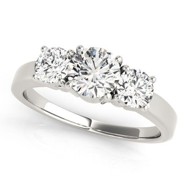Timeless Design: The trilogy design with round diamonds represents the past, present, and future of your love.