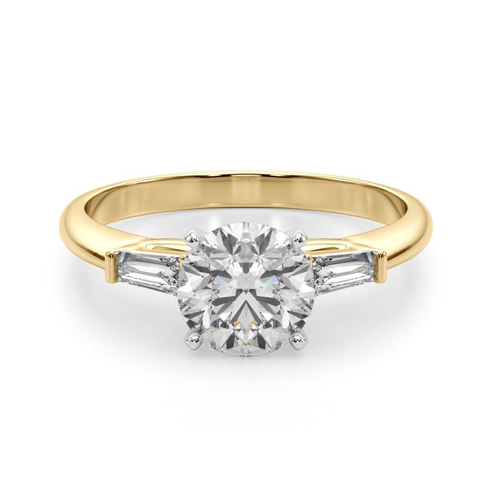 Round Cut Trilogy Engagement Ring with Baguette Side Diamonds