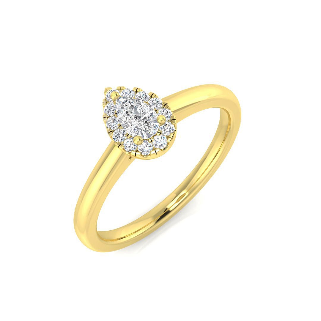 Natural Pear & Round Cut Diamond Halo Engagement Ring