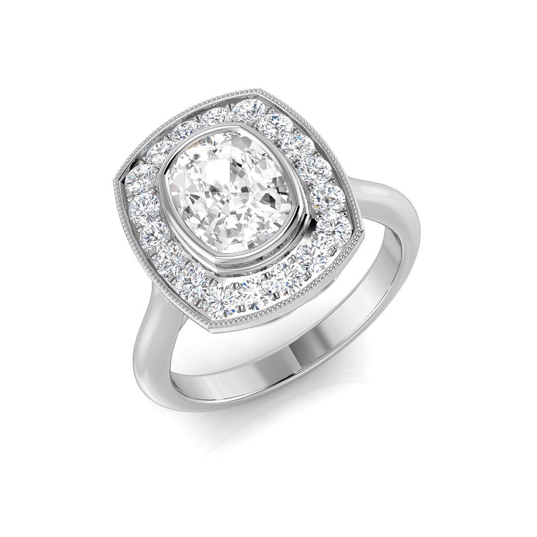 Natural Cushion Cut Diamond Halo Engagement Ring