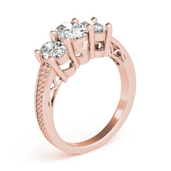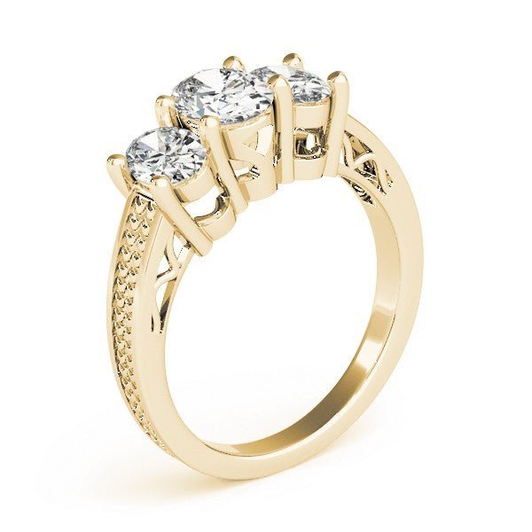 This elegant DE/VS Lab Grown Diamond Engagement Ring is a graceful expression of vintage charm and timeless romance. Featuring an oval-cut center diamond flanked by two matching oval-cut side diamonds, the design is elevated with fine milgrain detailing and subtle Art Deco influences. A true symbol of the past, present, and future „ perfect for engagements or anniversaries.