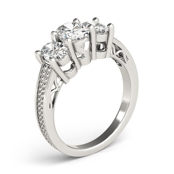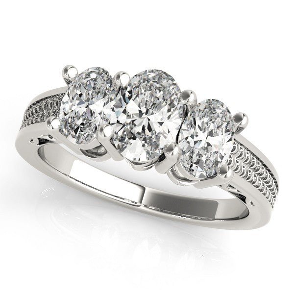 Lab-Grown Oval Diamond 3 Stone Engagement Ring In 18K White Gold
