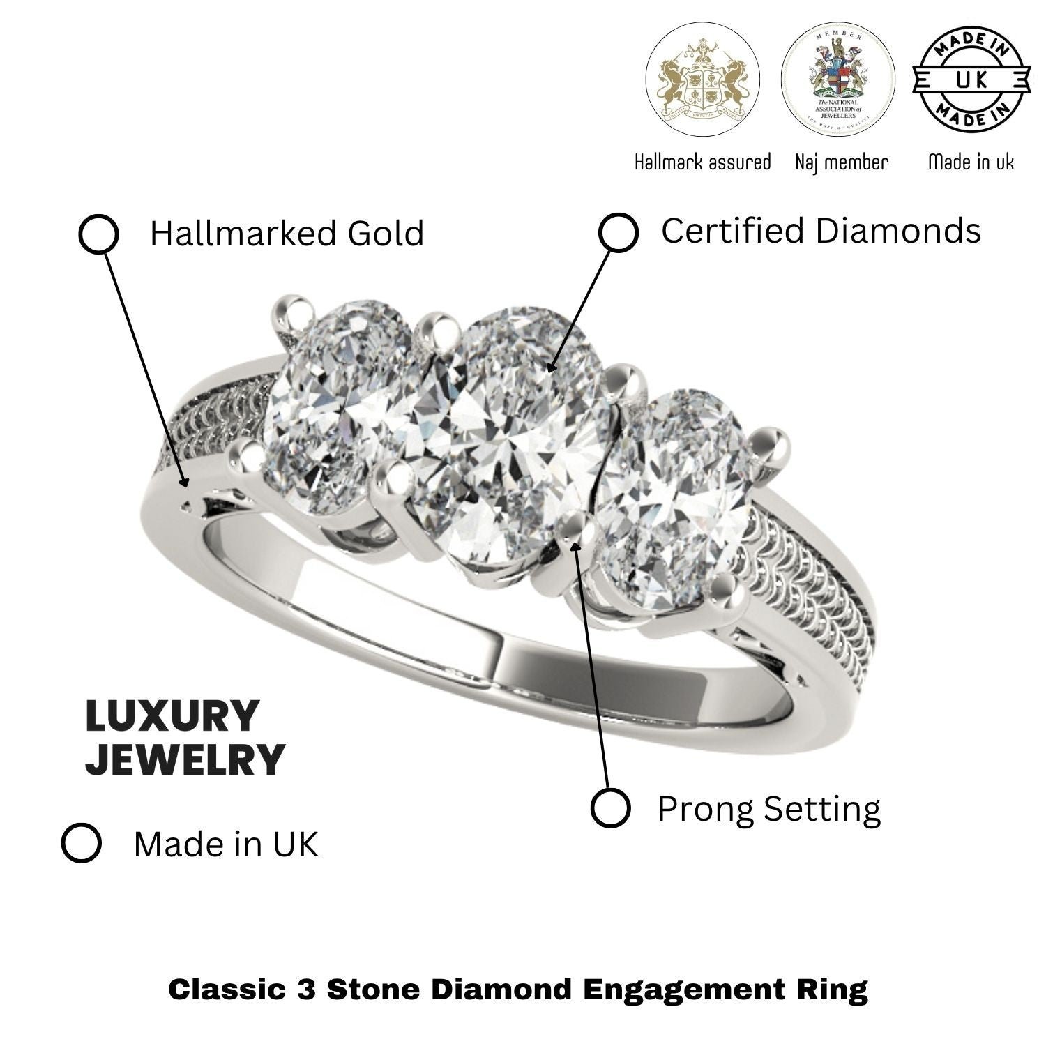 Available in 9K, 18K White, Yellow, Rose Gold, or Platinum, with total lab-grown diamond weights from 0.50Ct to 2.00Ct, each piece is handcrafted in the UK and hallmarked by the UK Assay Office for certified authenticity and quality.