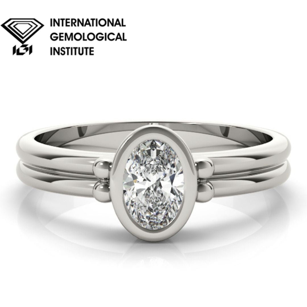 €605.00 – €1,348.00Price range: €605.00 through €1,348.00IGI Lab-Grown Oval Diamond Bezel Solitaire Engagement Ring, D Color VVS Clarity