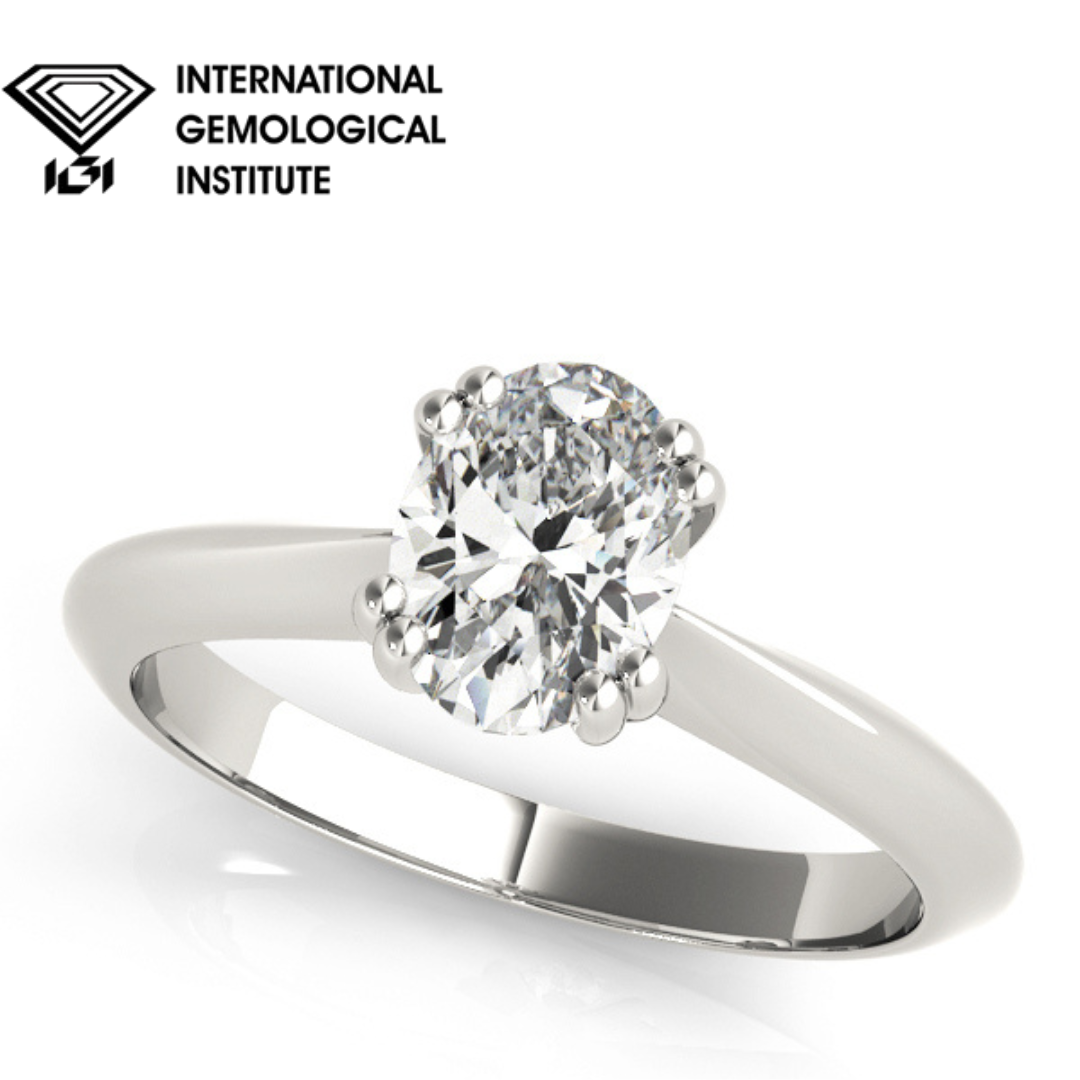IGI Lab-Grown Oval Diamond 4 Prong Solitaire Engagement Ring, D Color VVS Clarity