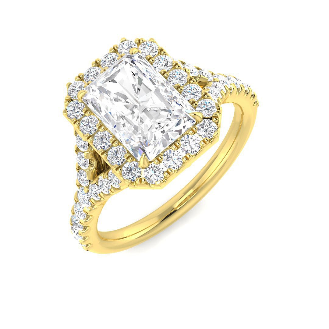 €2,683.00 – €3,834.00Price range: €2,683.00 through €3,834.00Lab Grown Round & Emerald Cut Diamond Halo Engagement Ring