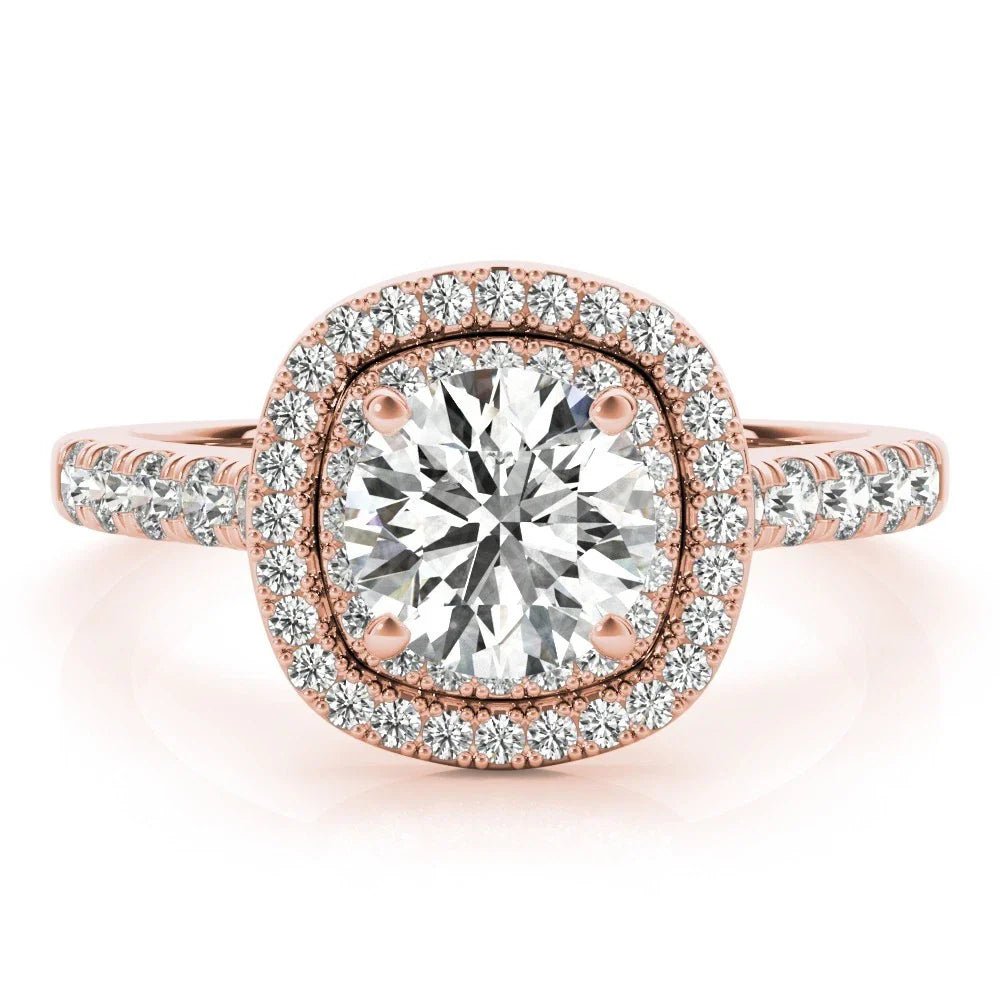 €1,560.00 – €2,852.00Price range: €1,560.00 through €2,852.00Lab Grown Round Cut Diamond Halo Engagement Ring In 18K Rose Gold.